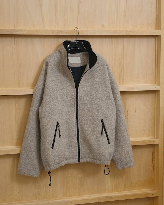 ゆったりとしたメンズライクなボアジャケット。配色のファスナーや引き手が目をひく一着。ウール混のオリジナルボア生地を使用。襟裏やポケットの内側にはフリース素材をあしらい、着心地のよさも抜群。さりげないステッチワークがディテールを引き立て、シンプルながらも存在感のあるジャケットです。