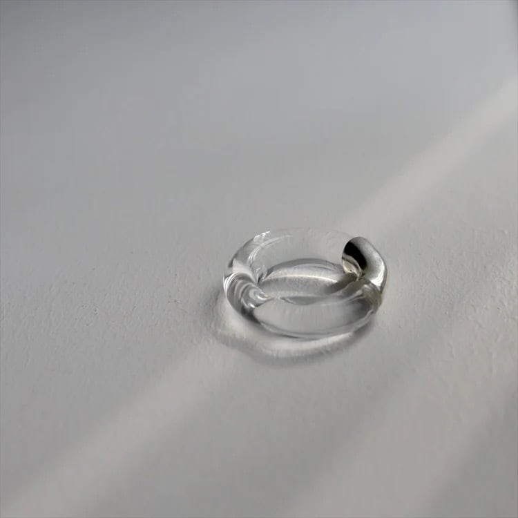 ガラスとシルバーで同じ流れをつくり一体感を出しました。シルバー部分を前に見せたり、ガラスをメインに見せたりと着用の仕方で色んな印象を楽しめるitemです。