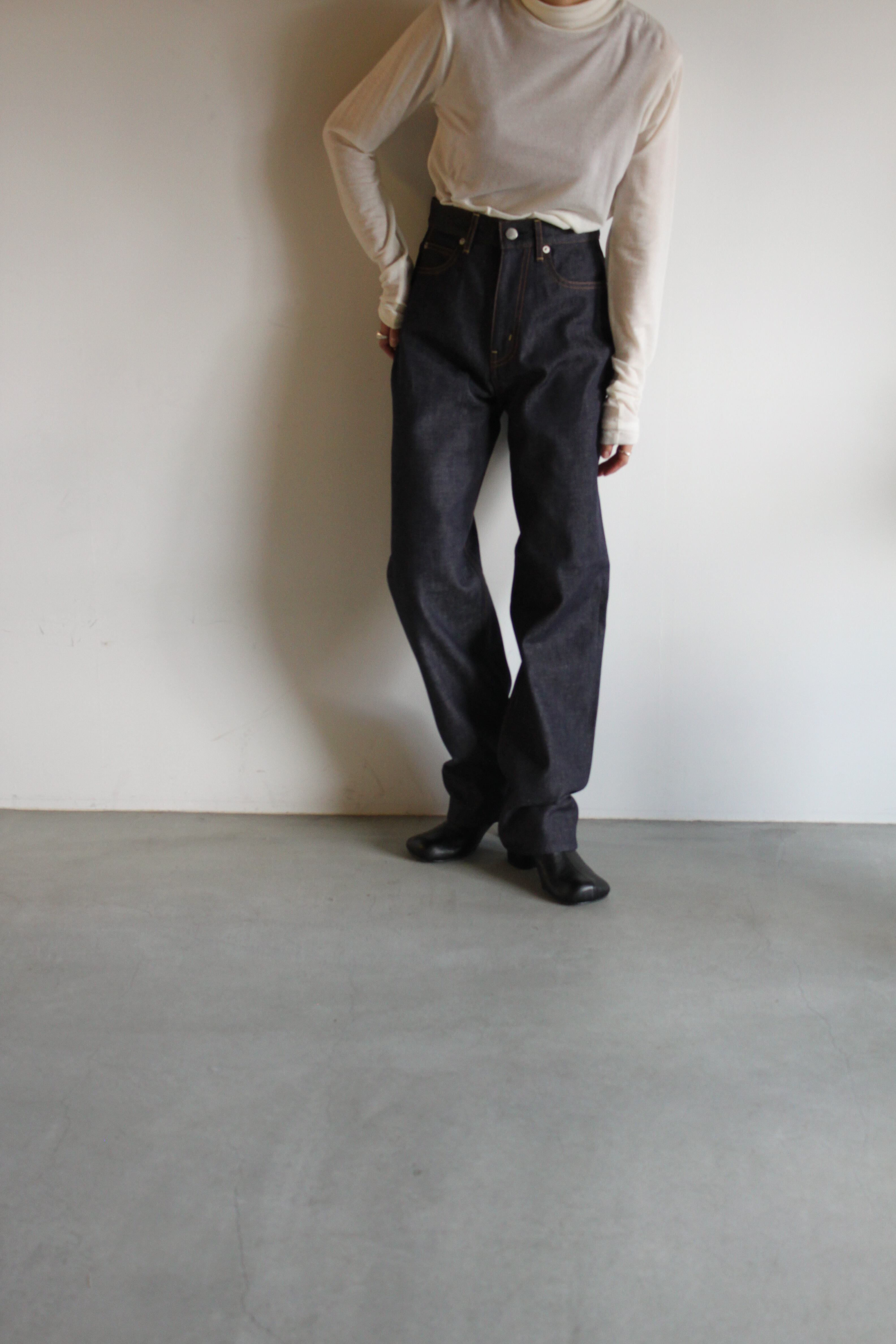 "CHERIE" シェリー(ハイウエストストレート) 腰回りの丸みとすっきりとしたハイウエストで女性らしいフォルムが特徴で、程よくレギュラーなストレートラインのシルエットです。