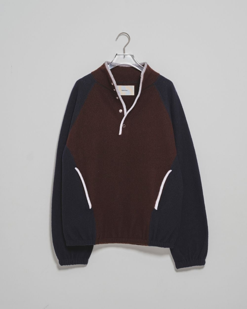 上質なウール100%の糸で編み上げたプルオーバー。圧縮加工によりほどよい厚みがありながらも、やわらかく軽やかな着心地が魅力の一枚です。胸元まであしらわれたリングスナップボタンに加え、ボディとフロントや、ポケット口に配したパイピングを組み合わせた、絶妙な配色バランスがさりげない個性を演出。ディテールまで丁寧に仕上げられており、シンプルながらもスタイリングに程よいアクセントを加えてくれます。