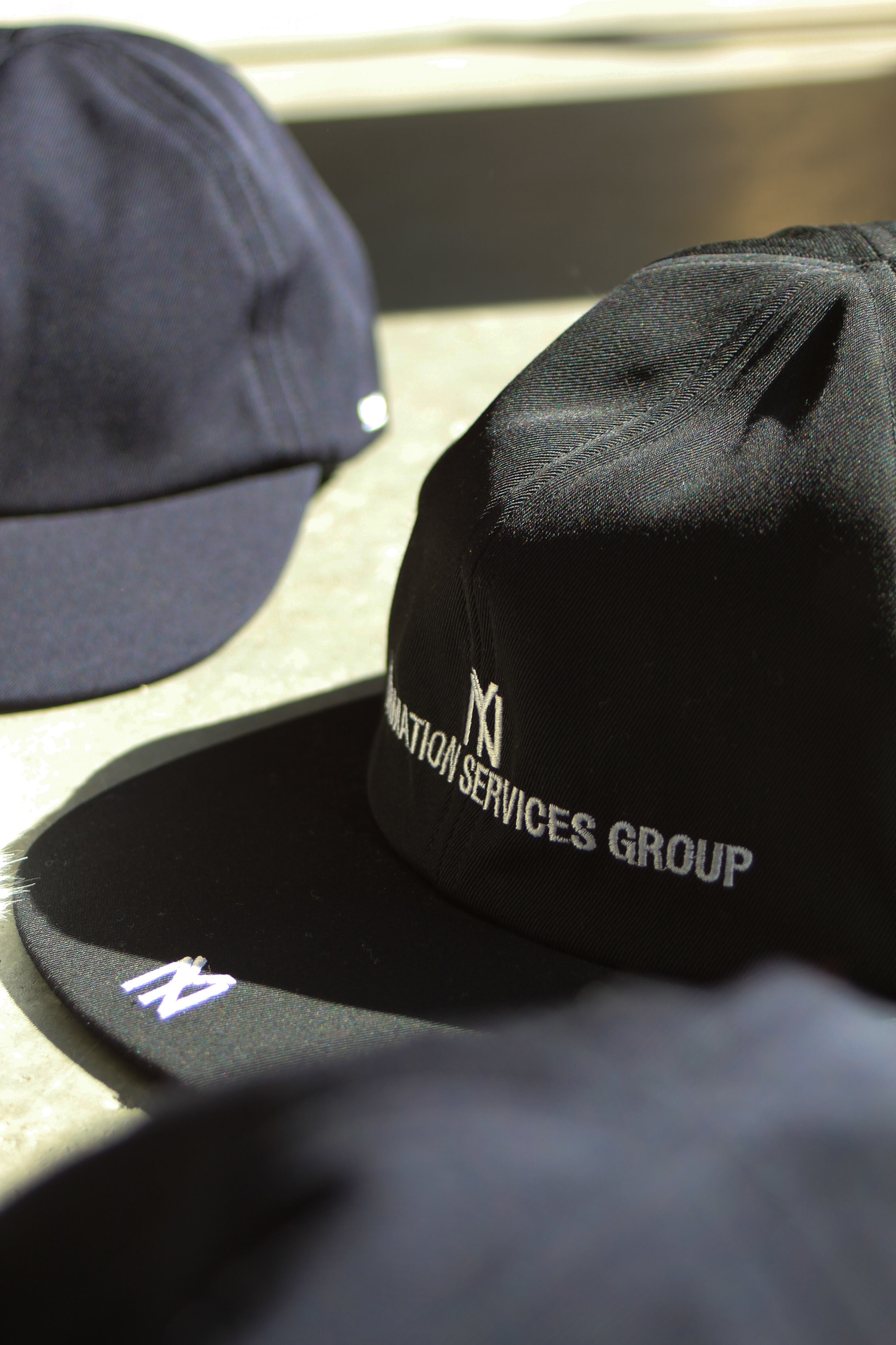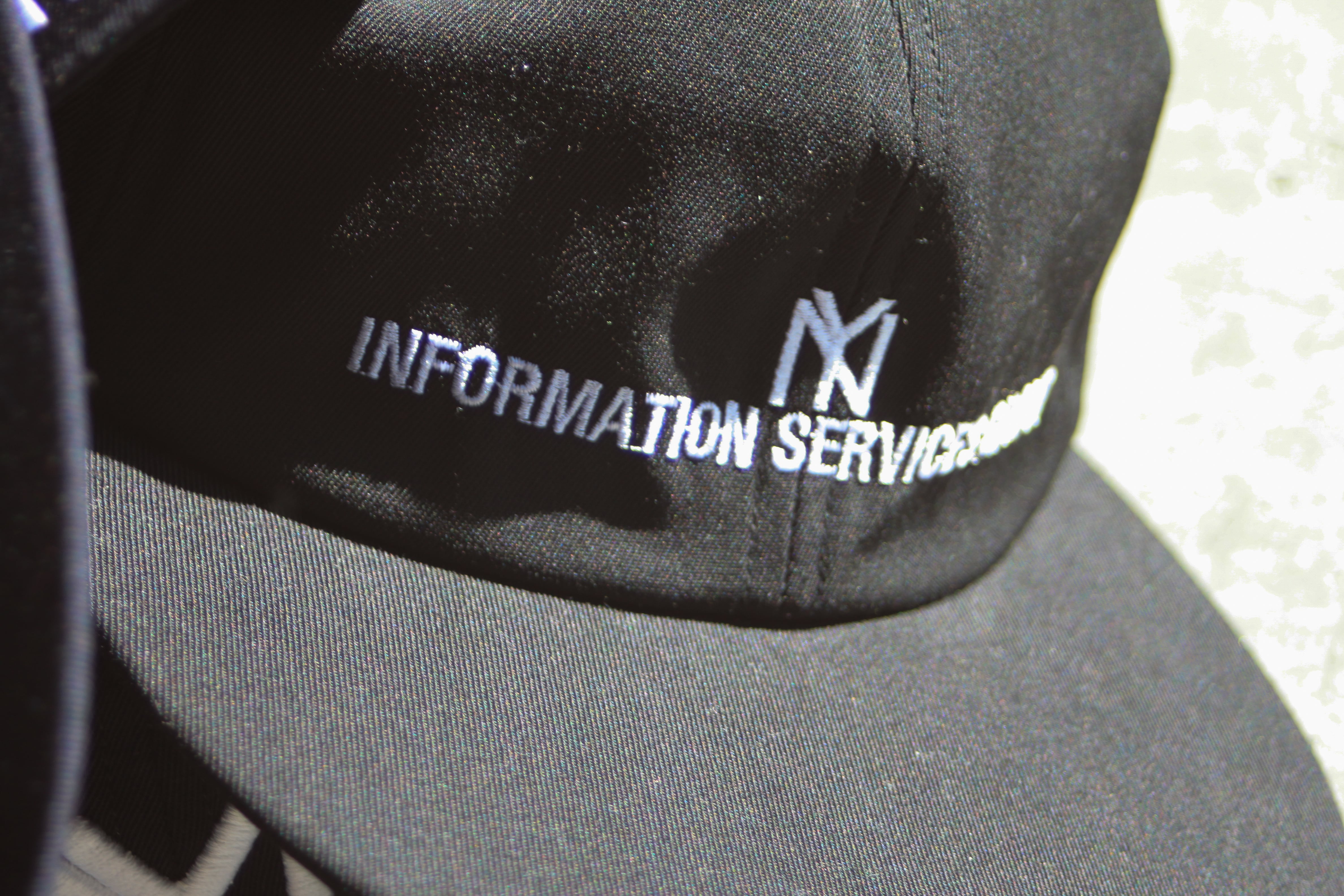 ”NY”ロゴと”INFORMATION SERVICES GROUP”のロゴが合わさった刺繍デザインがフロントに入ります。