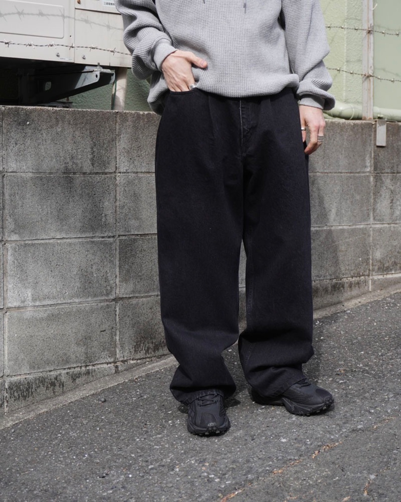 【EVCON】1TUCK BAGGY DENIM BIO[BLACK]
